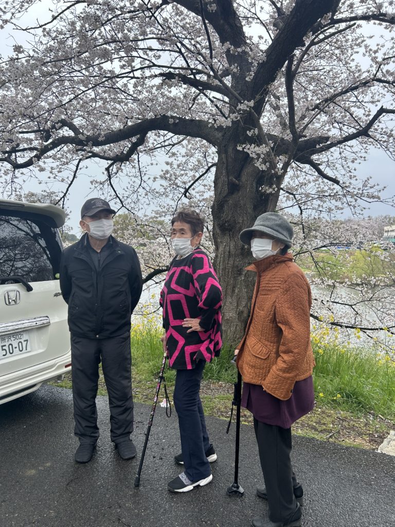 車外に出て桜の花・菜の花を楽しめました。一緒に昼食を食べる事も、ドライブ🎵も